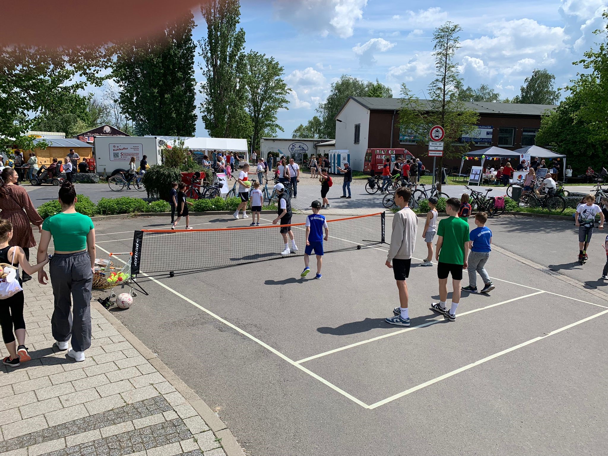 Leider wurden die Plätze noch nicht professionell aufbereitet (was aber zeitnah stattfinden wird), aber dank der Tatsache, daß wir beim TCM auf Kunstrasen spielen, können wir unsere Anlage schon bespielen. ´Die Netze sind schon aufgehängt und die ersten Spieler haben das schöne Aprilwetter genutzt, um die ersten Bälle im Freien zu spielen.
